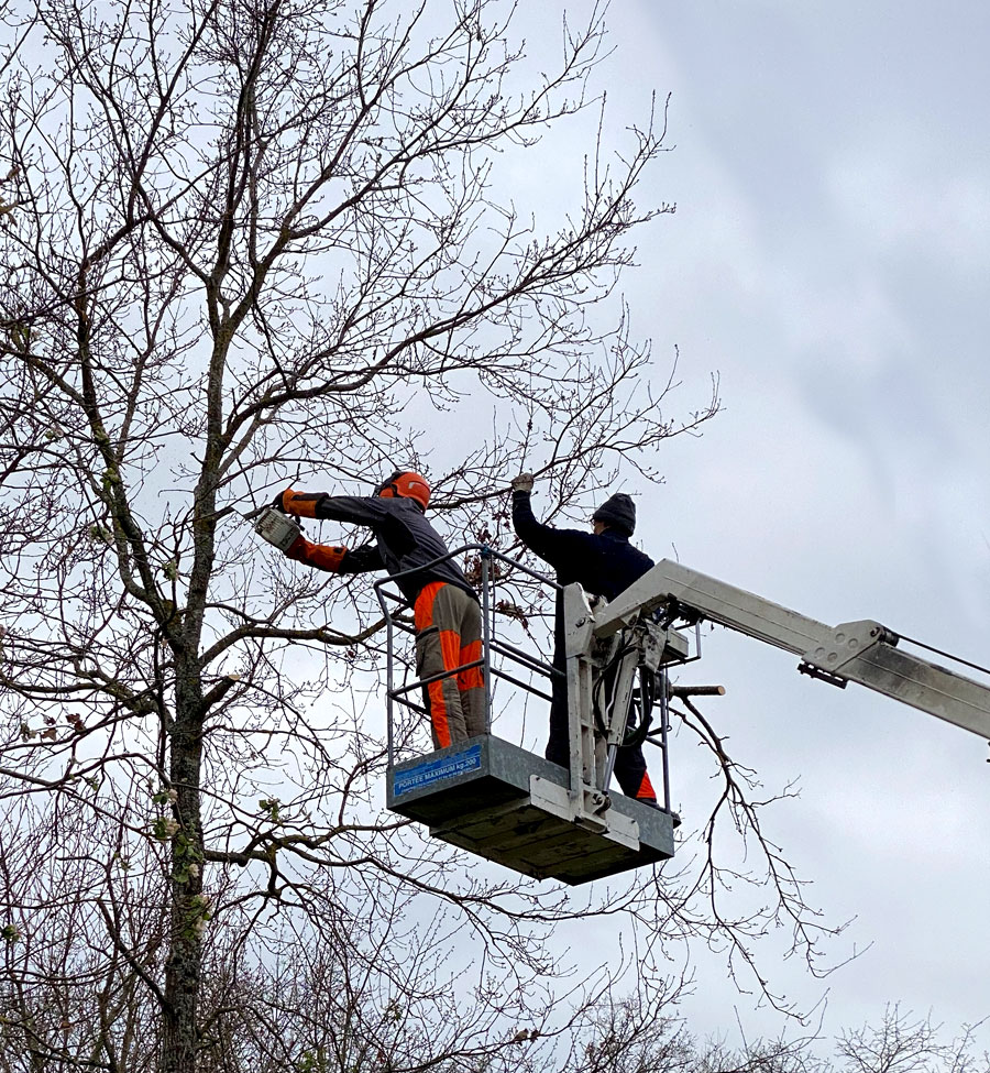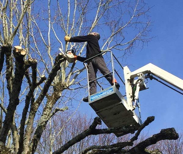 Interventions avec nacelle par un élagueur-grimpeur