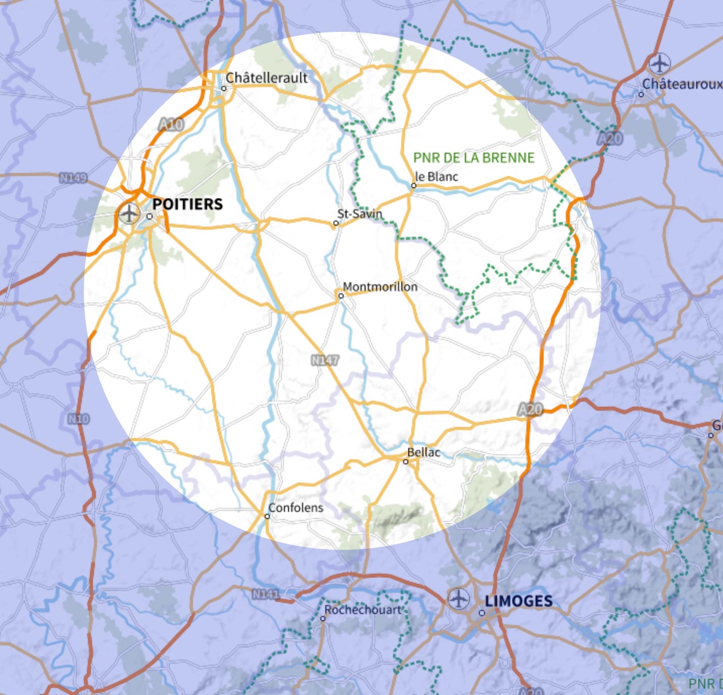 Nos équipes interviennent dans une zone de 50 km autour de Montmorillon, dans le Sud-Vienne (86), Indre (36), Haute-Vienne (87).